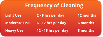 The need for duct cleaning will depend on the level of usage, types and quantity of food and other risk factors such as vulnerability of the system to ignite and the potential effect on building occupants.